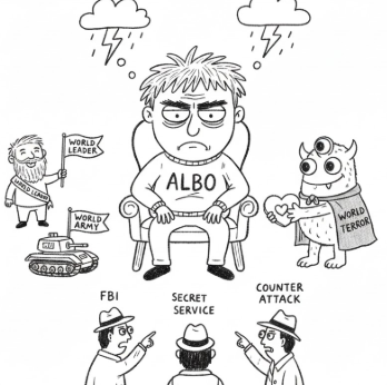 When Albo's being moody, I call in the big guns. World Leaders offer diplomatic talks, World Armies establish a 'No-Grumpy-Zones' perimeter, and even World Terrors team up with us-because nobody messes with our day!